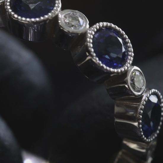 Bezel-Set Blue Sapphire & Diamond Half Eternity Band 14k White Gold| 1.45 CTW